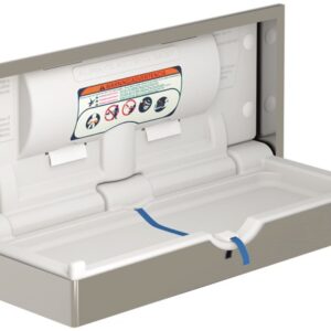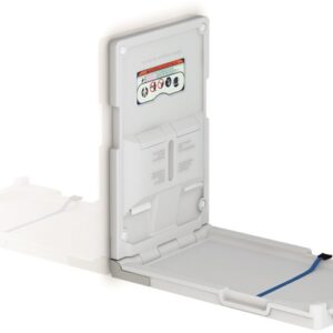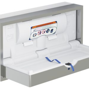 B95,6 x H55,1 x D43,6cm (åpen). Foldbart stellebord innfelling i vegg. Produsert i hygienisk og rengjøringsvennlig polyethylene med kasse i rustfritt stål. Justerbart sikkerhetsbelte i slitesterk nylon med låsemekanisme på siden. Farge hvit.