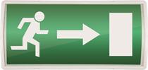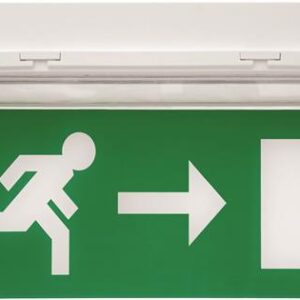 L33 x H19,3 x D5,4cm. Armatur og kuppel i polykarbonat. 180 min backuptid. Leveres med 2 piktogrammer, LED 4W og batteri. Automatisk test. IP20.