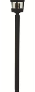H211cm. Moderne stolpelampe med 3 kupler. Inspeksjonsluke. Presstøpt aluminium. Sokkel E27. Farge stolpe sort eller mørk grå. Kupler i klart glass. IP44.