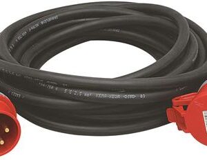 230V. 16A. 3-fas. 25m. 4G2,5mm2. 2-veis skjøtekabel. Med selvlukkende lokk. Godkjent for utendørs bruk. IP44.