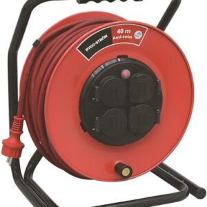 230V. 1-fas. 40m. 3G1,5mm2. Meget slitesterk kabeltrommel i metall. Overopphetingsvern og jordete uttak med lokk. Anti-twist. Godkjent for utendørs bruk. IP44.
