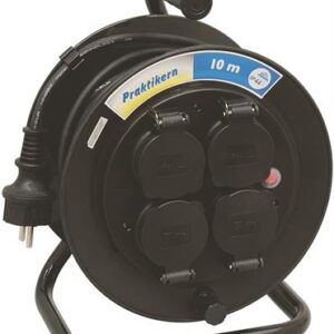 230V. 1-fas. 10m. 3G1,0mm2. Solid kabeltrommel i slagfast plast. Overopphetingsvern og jordete uttak uten lokk. For innendørs bruk. IP20.