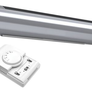 L108 x H15 x D15,5cm. Luftport med støyreduserende teknologi og optimalisert luftutblåsing. Elektrisk varmebatteri. For porthøyder opp til 2,5m. Monteres horisontalt.