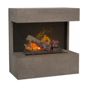 Peisen leveres med 1 stk forstøver (forbruksvare), 4 stk halogen lyspærer (forbruksvare) og ledning med støpsel. Farge peis betong. Innsats sort. Type OMC4.