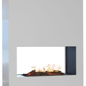 H46,5 x B127 x D14cm. Vegghengt design el-peis med et realistisk flammebilde og energisparende LED teknologi. Kan også felles inn i vegg.