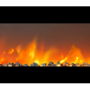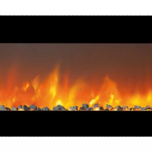 H46,5 x B183 x D14cm. Vegghengt design el-peis med et realistisk flammebilde og energisparende LED teknologi. Kan også felles inn i vegg.