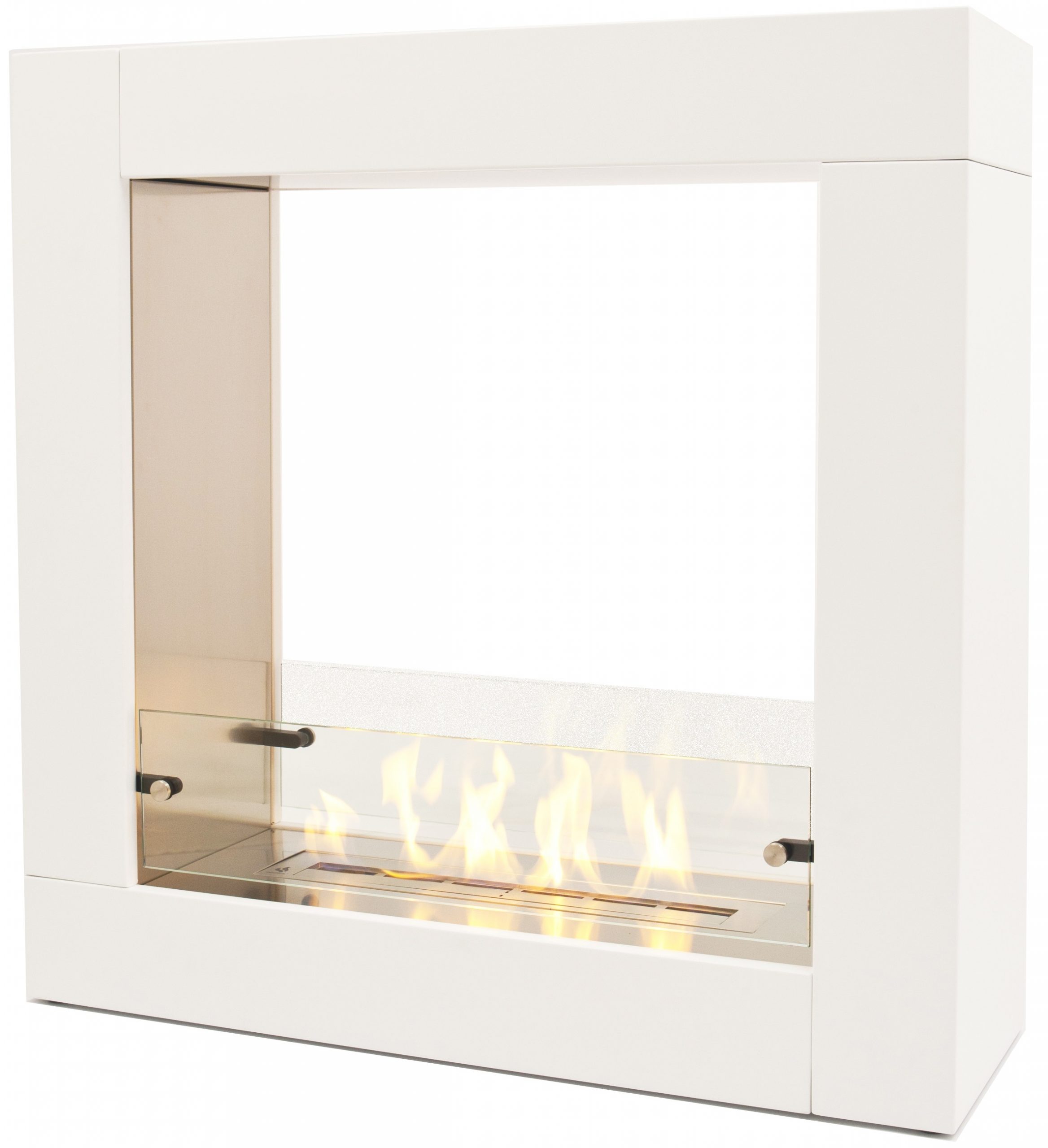 H90 x B90 x D30cm. En av våre desiderte bestselgere blant gulvmodellene! Rålekker biopeis der flammene kan sees fra begge sider. Farge hvit med børstet innside.