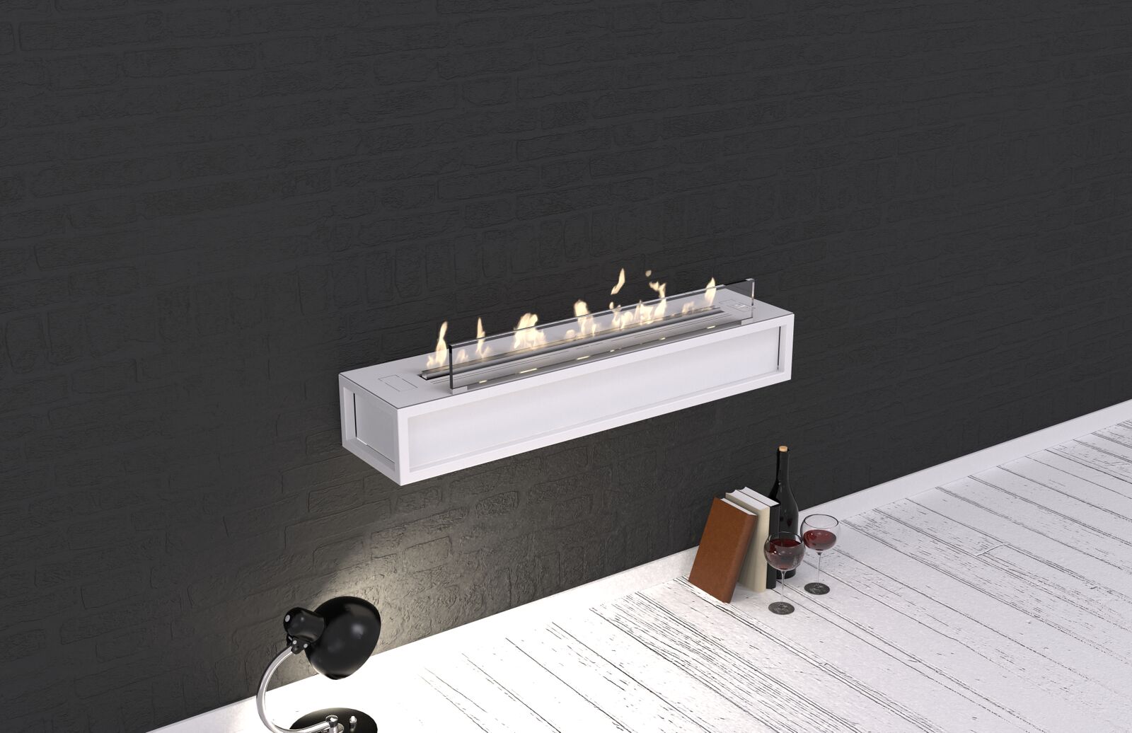 L93 x H14,5 x D22,5cm. Vegghengt biopeis med eksklusiv finish. Med alle moderne funksjoner. Elektronisk brenner og flere styringsmuligheter. Farge hvit.