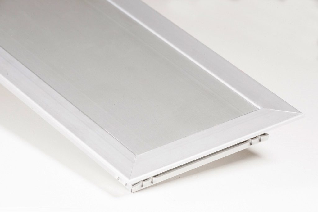 Varmelist med ramme for nedfelling i underlaget. Se «Teknisk info» for alle standardlengder og utsparingsmål. Blir maks 60 grader, selv ved tildekking. Vanntett og vandalsikker. IP67.