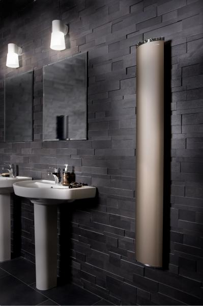 Håndkle-/klestørker som passer overalt i huset. Unik design, buet profil, børstet aluminium. Farge champagne. 5 års garanti. IP44.