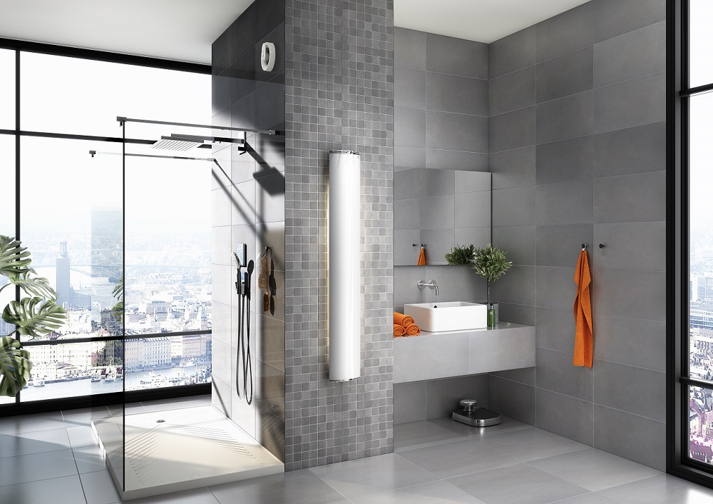 Håndkle-/klestørker som passer overalt i huset. Unik design, buet profil, børstet aluminium. Farge hvit høyglans. 5 års garanti. IP44.