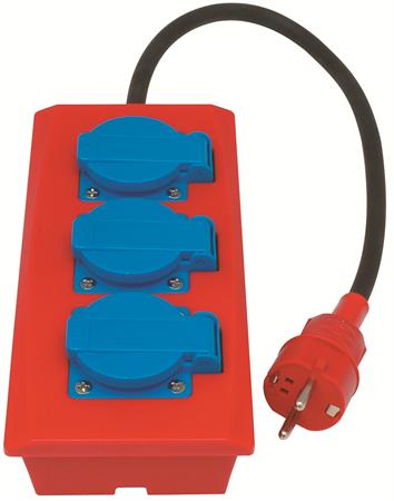 230V. 1-fas. 0,5m. 3G1,5mm2. 3-veis forgrener med jord. Med nøkkelhull bak for montering på vegg. Selvlukkende lokk. Godkjent for utendørs bruk. IP44.
