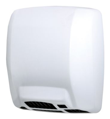 Liten og kraftig håndtørker i moderne design som tørker hendene på 12-15 sek. Vandalsikker. Farge hvit. IPX1.