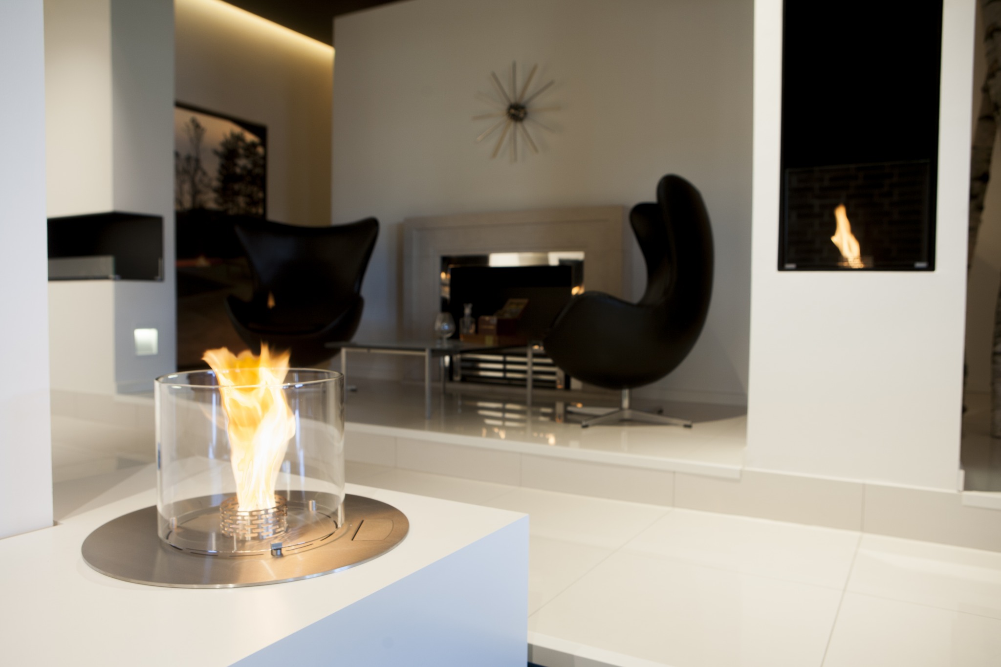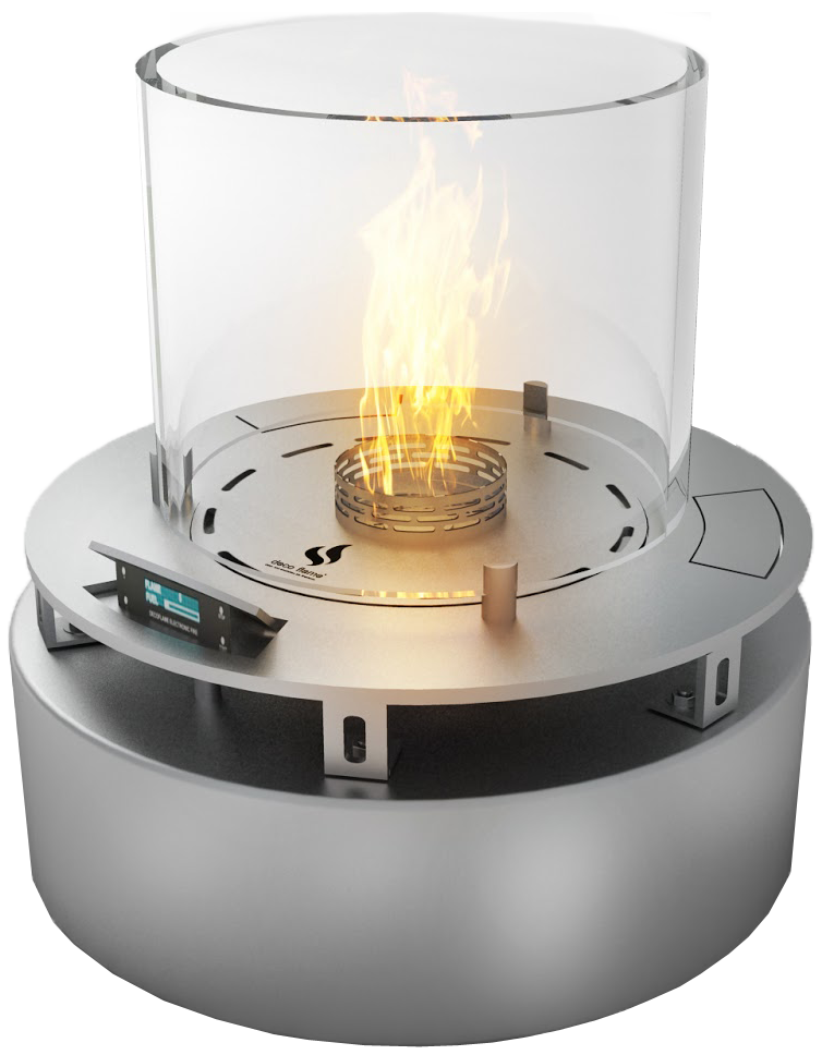 H25 x Ø50cm. Liten, lekker biopeis for innfelling. De levende flammene er omgitt av en 1cm herdet glassylinder. Elektronisk brenner og flere styringsmuligheter.