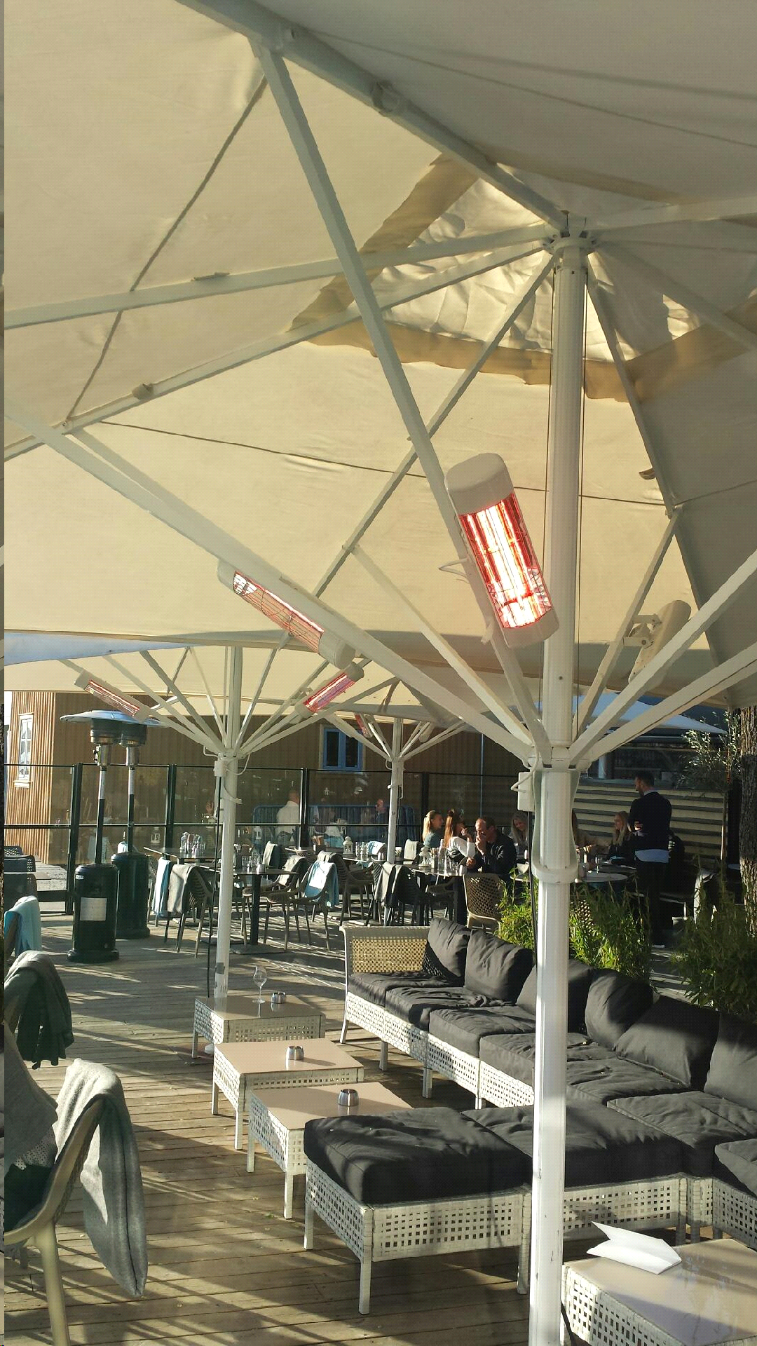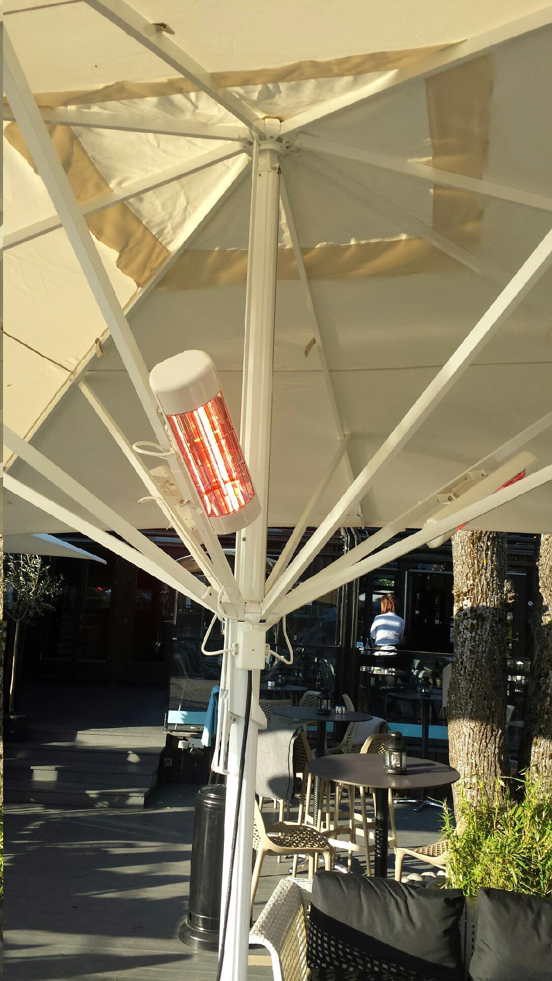 L48 x H12 x D12cm. Proff utevarmer for restauranter og puber. “Gold” kvartsvarmerør med ultratynt, dikroisk belegg som gir markedets mest overlegne utevarme. Kvalitetsrør med oransje lys. Monteres på vegg, i tak eller på profesjonelle parasoller og markiser.
