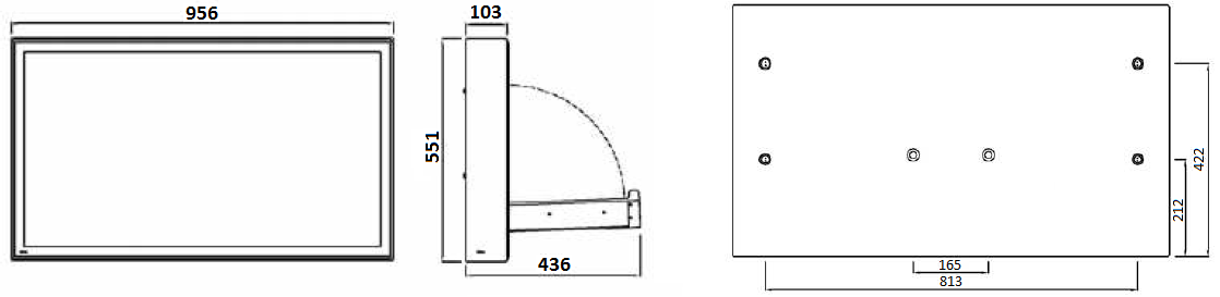 B95,6 x H55,1 x D43,6cm (åpen). Foldbart stellebord innfelling i vegg. Produsert i hygienisk og rengjøringsvennlig polyethylene med kasse i rustfritt stål. Justerbart sikkerhetsbelte i slitesterk nylon med låsemekanisme på siden. Farge hvit.