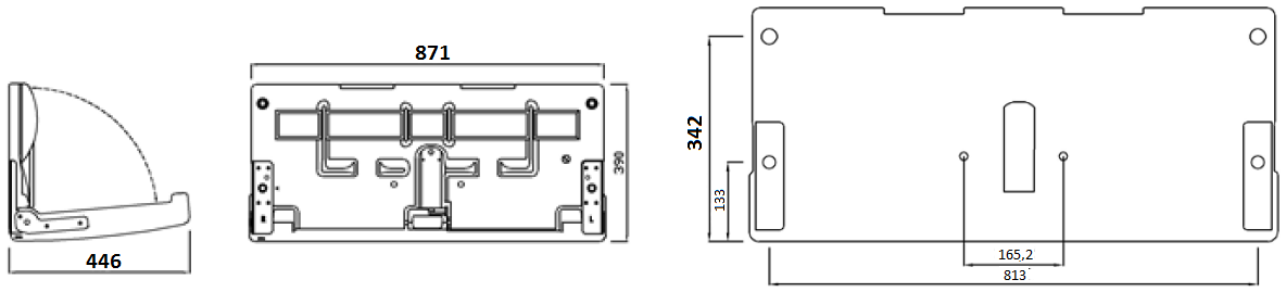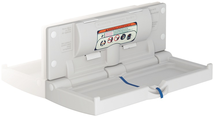 B87,1 x H39 x D44,6cm (åpen). Foldbart stellebord i hygienisk og rengjøringsvennlig polyethylene. Justerbart sikkerhetsbelte i slitesterk nylon med låsemekanisme på siden. Farge hvit.