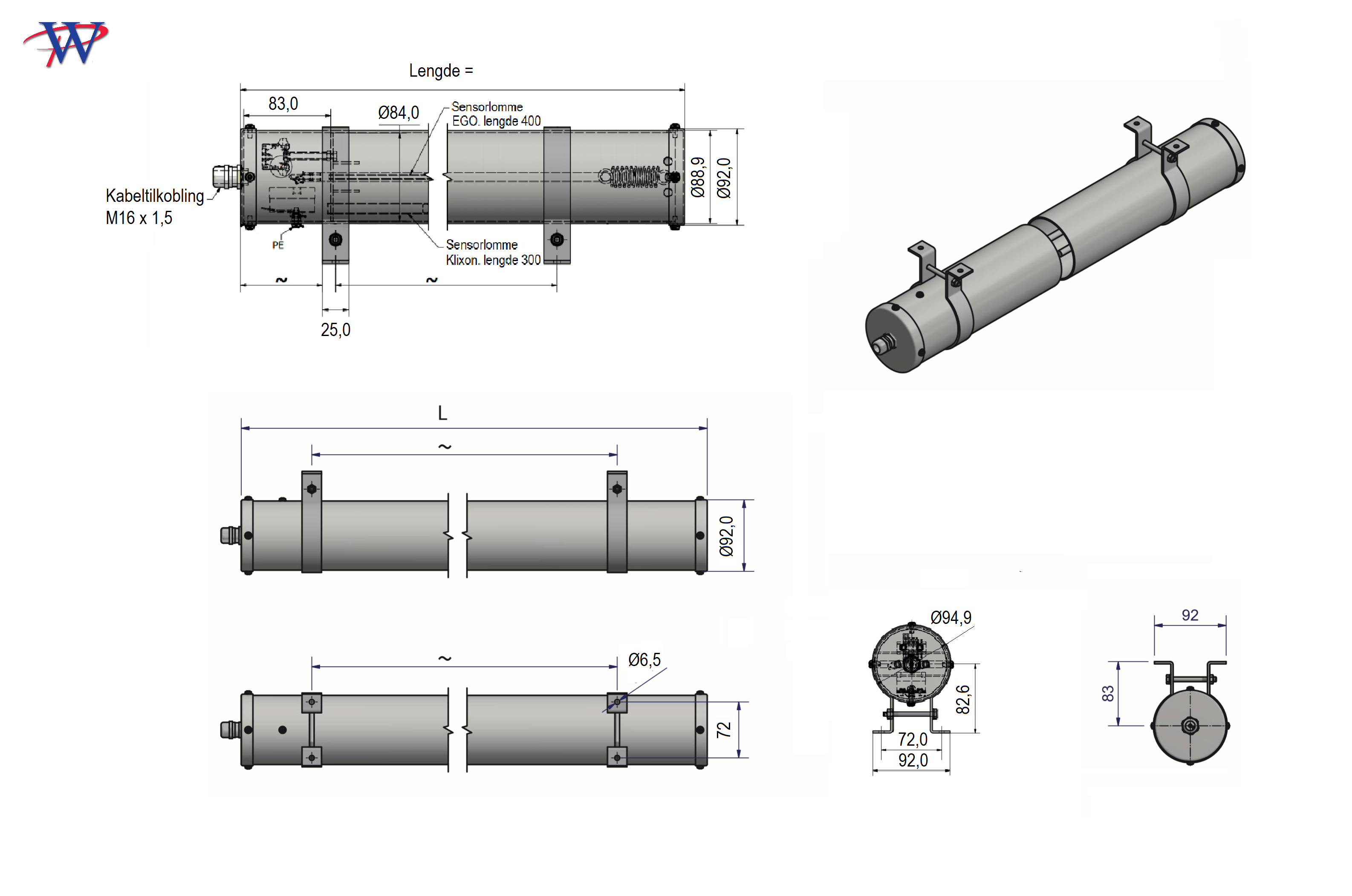 Leveres med braketter for montering under benk, på gulv eller på vegg.