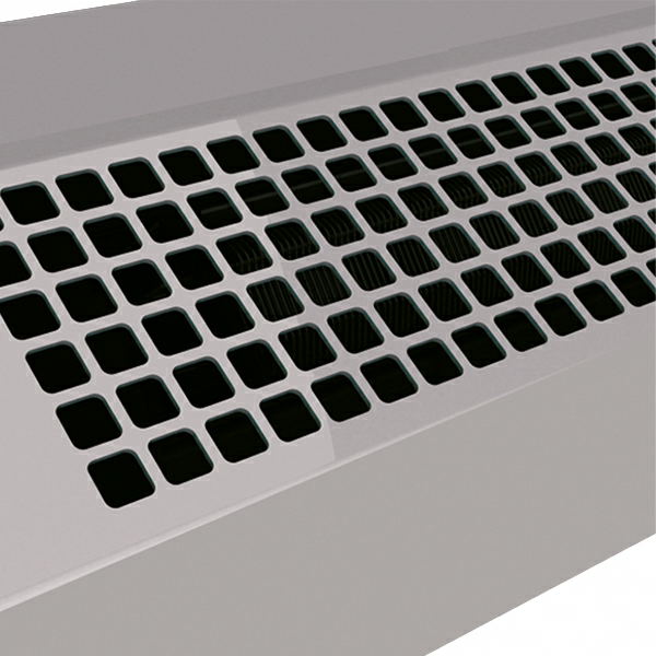 L80,5 x H15 x D15,5cm. Luftport med støyreduserende teknologi og optimalisert luftutblåsing. Elektrisk varmebatteri. For porthøyder opp til 2,5m. Monteres horisontalt.