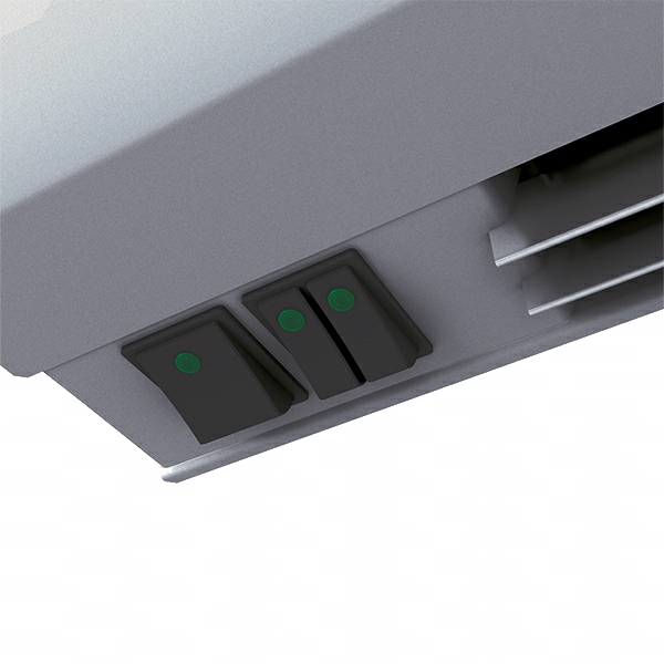 Regulering via knapper under luftporten.