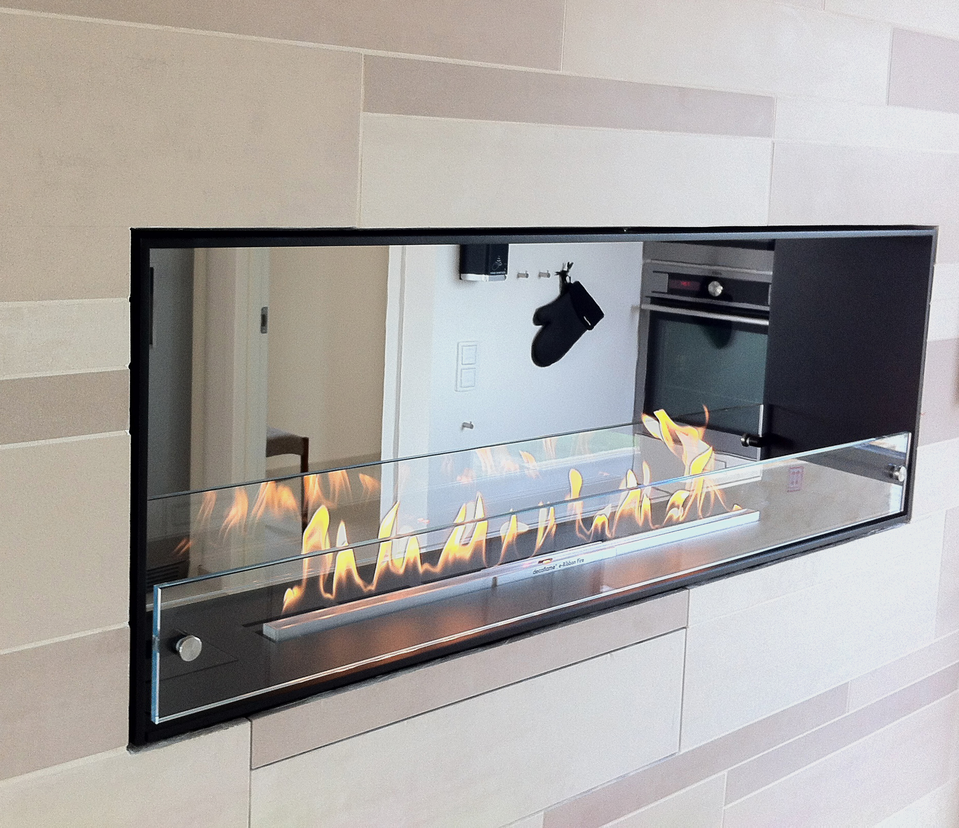 L100 x H40 x D30,8cm. Elegant innsats åpen til to sider. Uten ramme. Med alle moderne funksjoner. Elektronisk brenner og flere styringsmuligheter.