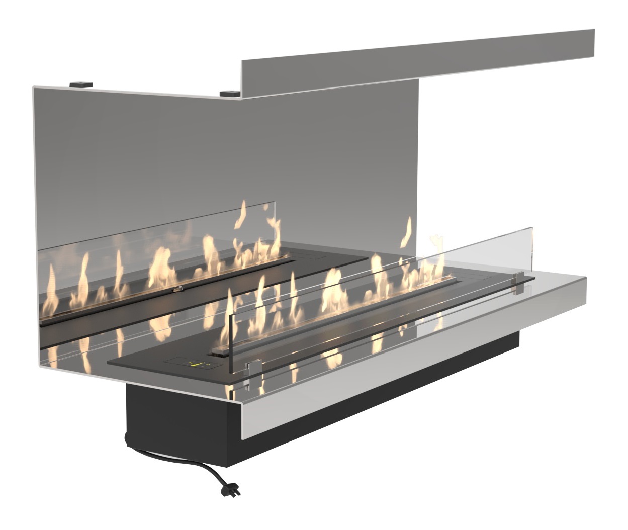 L125 x H39,4 x D35,3cm. Innsats åpen til tre sider. Eksklusiv optikk. Med alle moderne funksjoner. Elektronisk brenner og flere styringsmuligheter.