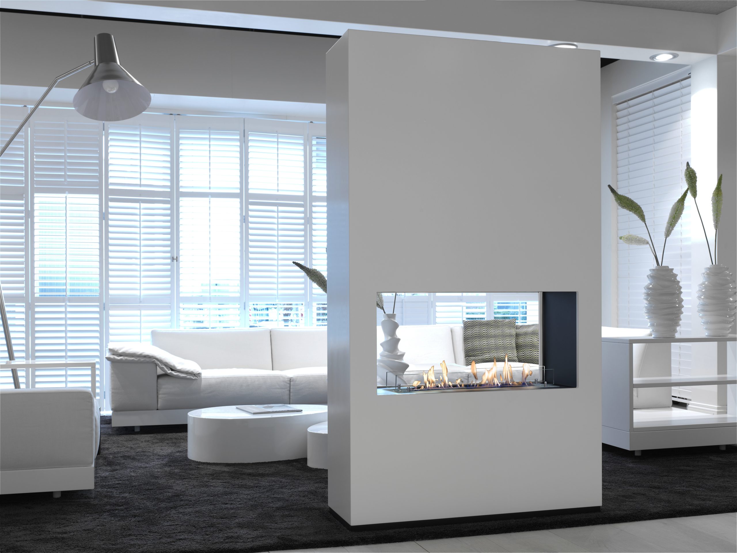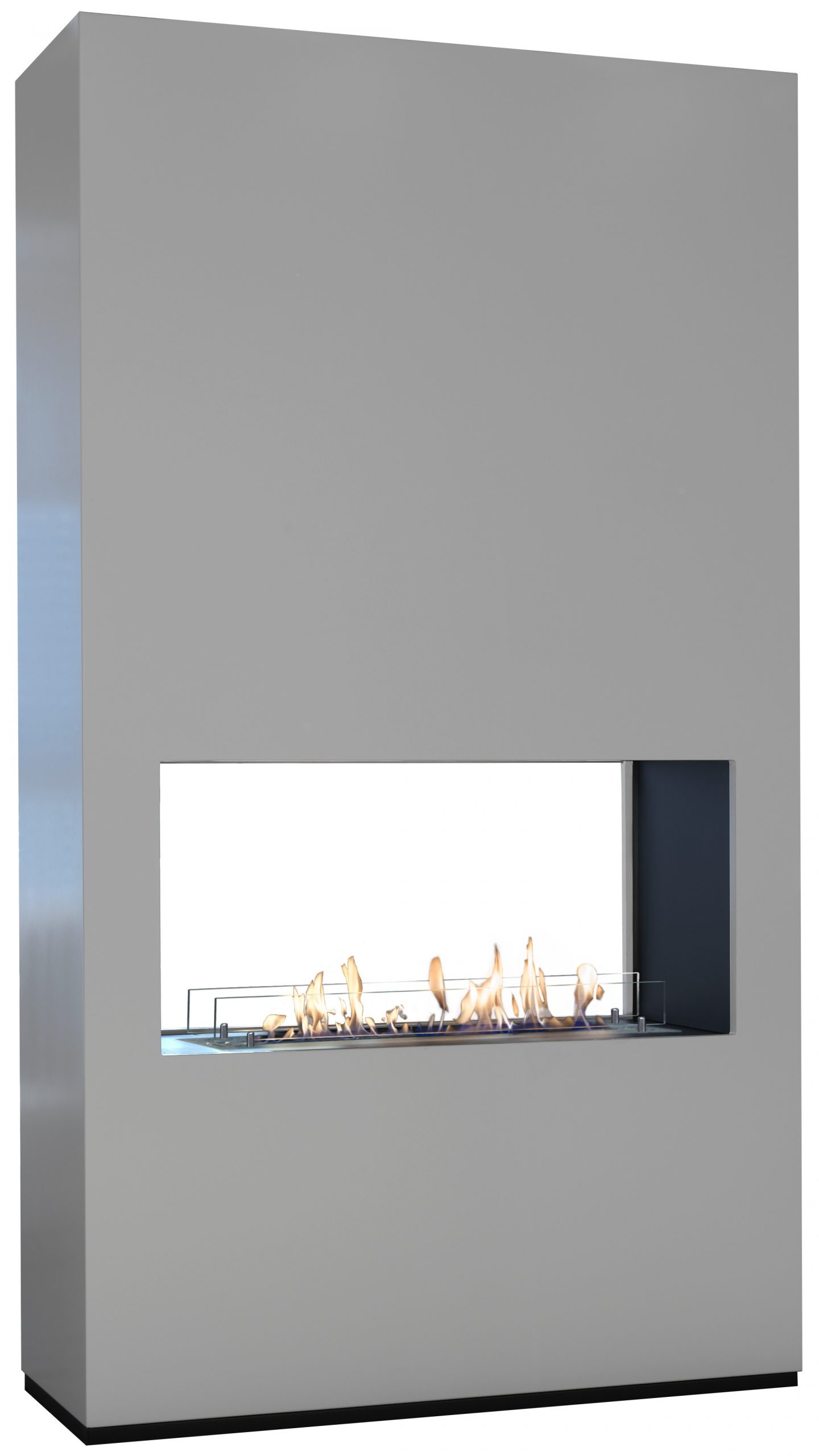 H195 x B110 x D35cm. Gedigen, frittstående, åpen biopeis. Praktisk som romdeler. Farge peis hvit. Innsats sort. Type 8014LS.
