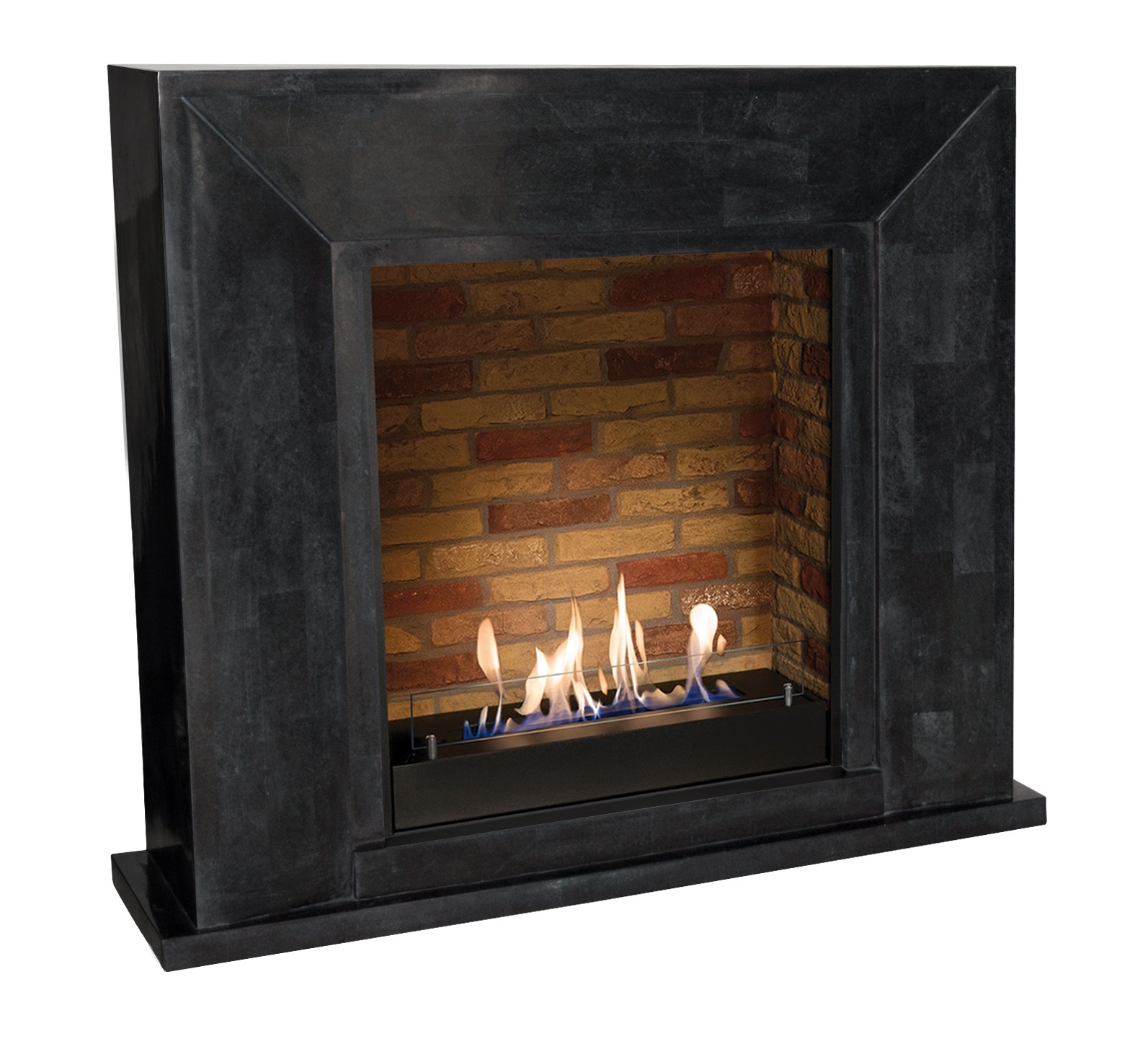 H101 x B119 x D36cm. Frittstående el-peis i enkel design. Farge peis polert sort sten. Innsats murstein. Type 5820BM.