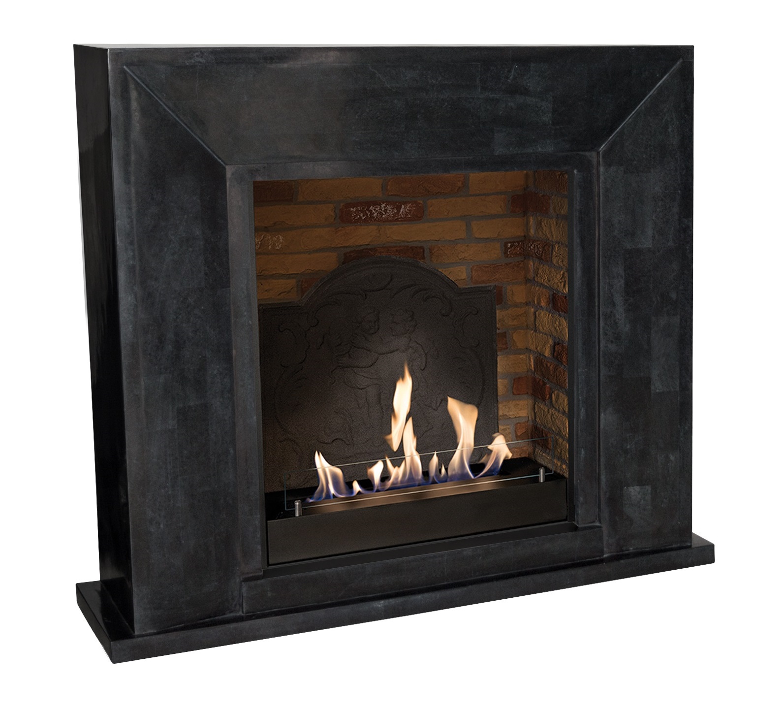 H101 x B119 x D34cm. Frittstående el-peis i enkel design. Farge peis polert sort sten. Innsats murstein med medallion. Type 5820BMM.