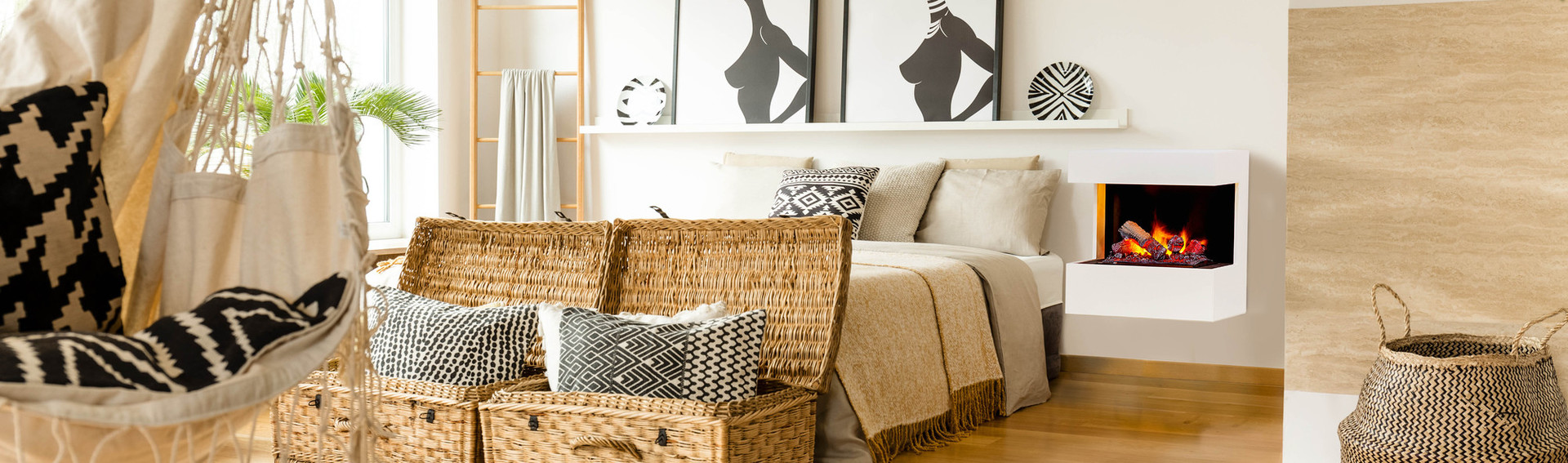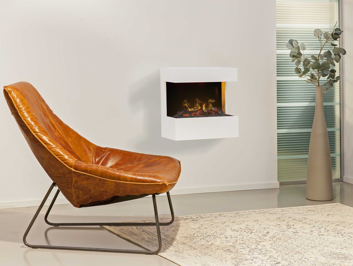 H62 x B60 x D30cm. Vegghengt el-peis i enkel og stramt design, med justerbar flamme og fjernkontroll. Uten varme.